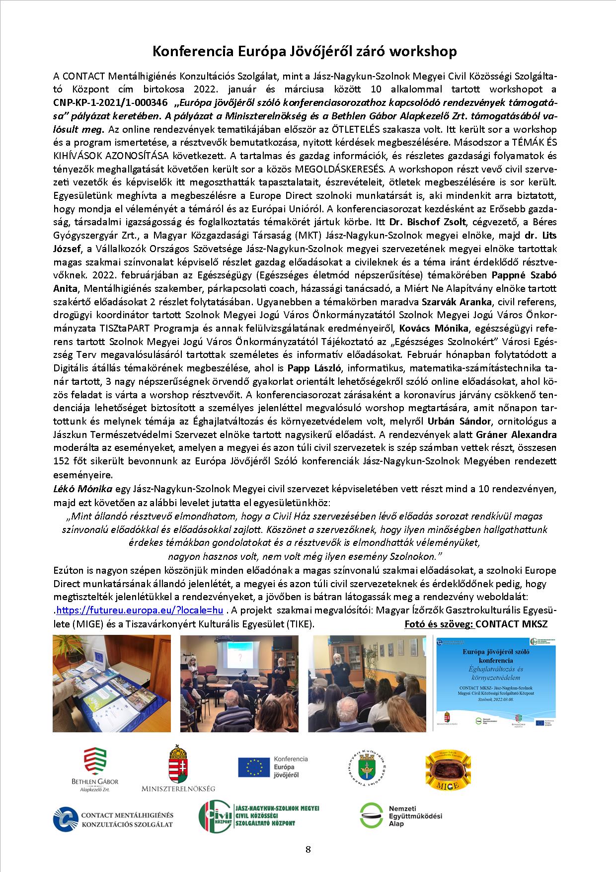 CNP-KP-1-2021/1-000346 – Az Európa jövőjéről szóló konferenciasorozathoz kapcsolódó rendezvények támogatása
